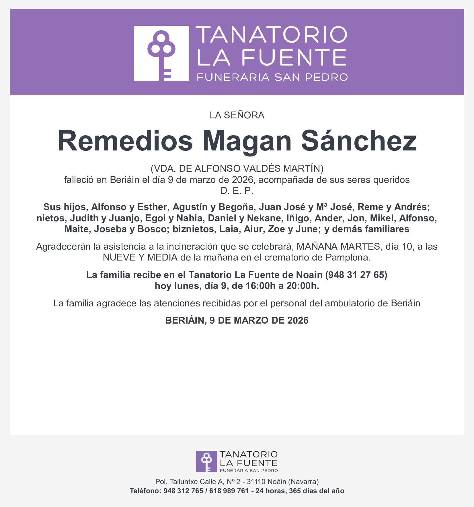 Envía tus condolencias directamente a la familia